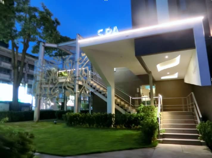 位在台中七期,佔地700坪,附設3個平面停車場,擁有100坪的雨林花園,灌樹叢包圍著本體建築,不知其門而入,我繞了一大圈才看到入口,那就像小叮噹的任意門,打開仿佛世外桃源,玻璃帷幕的長廊走道,宛如被水包覆般的設計,踏水而上的階梯,還沒進入會館,身心靈已經釋放1/3!與我去過的健身房,俱樂部的氣氛,是全然不同的感受。